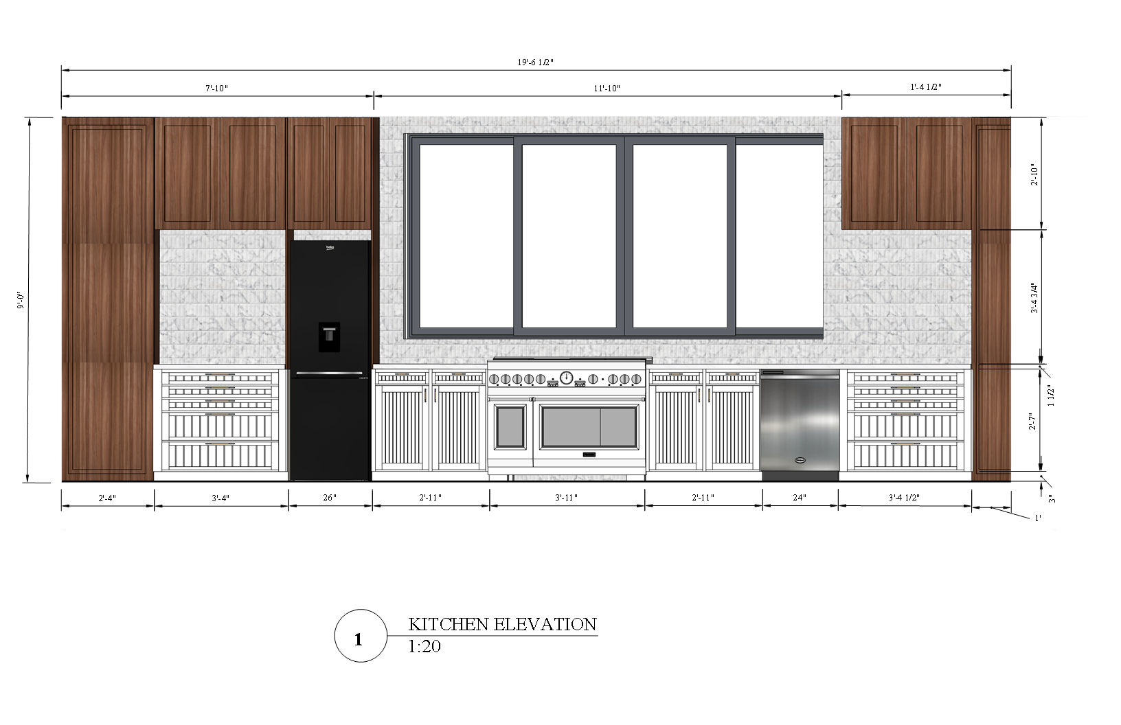 Kitchen elevation rendered in Sketchup.